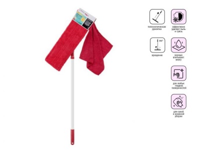 Швабра для пола с насадкой из микрофибры, бордовая + салфетка из микрофибры 30х30 см, PERFECTO LINEA, 43-392021