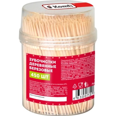 Зубочистки березовые 450 шт Komfi 34697 Березовые зубочистки