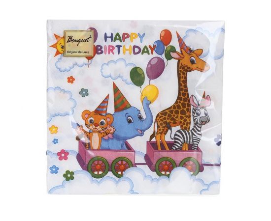Салфетки бумажные 33x33см "Зоопарк" Bouquet 20 листов трехслойные.