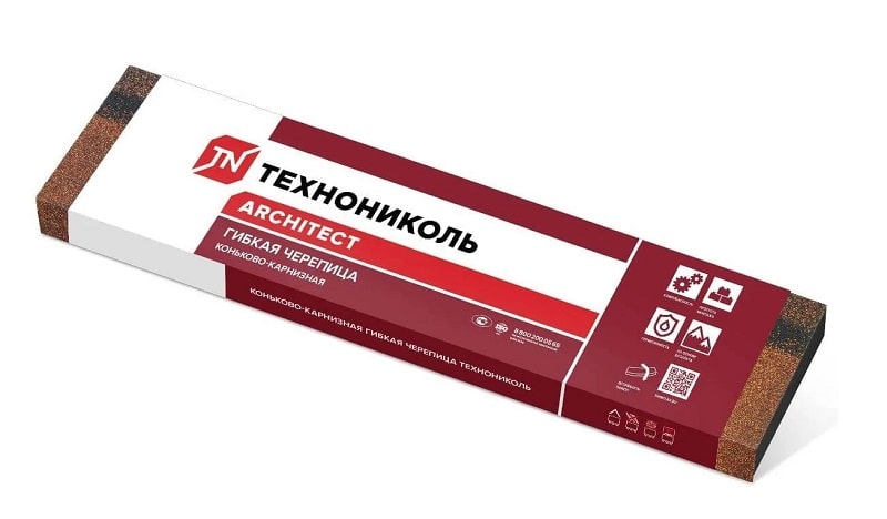 Применение: при монтаже в качестве стартовой полосы черепица прибивается к обрешетке при помощи оцинкованных гвоздей с широкой шляпкой, с отступом от края 25 мм. Тыльную сторону следует промазать мастикой на «сдир». Для выполнения коньков черепица предварительно нарезается, далее прибивается гвоздями и подмастичивается.