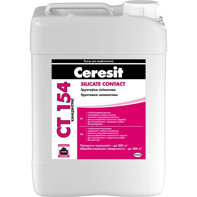 Силикатная грунтовка Ceresit CT 154 используется для выравнивания впитывающей способности и укрепления оснований перед покраской. Грунтовка обладает высокой паропроницаемостью и рекомендована для применения при реставрации.