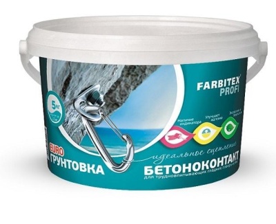 Грунтовка адгезионная (бетонконтакт) FARBITEX ПРОФИ предназначена для укрепления минеральных, бетонных поверхностей перед проведением окрасочных работ плотными, плохо впитывающими, декоративными материалами. Образует шероховатую поверхность, улучшает сцепление последующих отделочных слоев с поверхностью. Увеличивает сцепление шпатлевок, штукатурок и плиток к поверхности.
