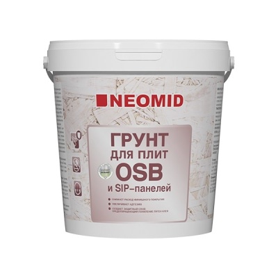Грунт для плит OSB и SIP-панелей 1кг НЕОМИД. Грунт-биозащита для OSB – акрилатная укрывающая грунтовка с антисептическими добавками для создания прочного адгезионного влагостойкого слоя на поверхности плит OSB, ДСП, ГВЛ а также для надежной защиты от биопоражений, плесени, грибов и разбухания.