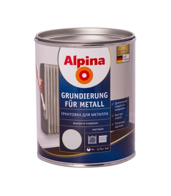 Грунтовка Alpina Grundierung für Metall пригодна как для внутренних, так и для наружных работ. С ней Вы можете проводить любые работы по грунтованию металлических поверхностей в Вашем доме.