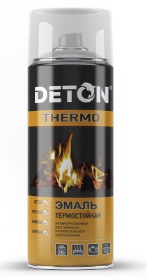 Эмаль-аэрозоль термостойкая черная 520 мл DETON THERMO. Термостойкая эмаль предназначена для защиты металлических и других поверхностей, подверженных воздействию высокой температуры до 750°С. Может быть использована для окрашивания нагревательного оборудования и печей, кирпичных, бетонных, асбестовых поверхностей, а также выхлопных систем автомобиля и глушителей с целью их предохранения от воздействия высоких температур, атмосферных осадков и агрессивных сред. Время высыхания «на отлип» - 5 минут, время полного высыхания - 2 часа (при 20°С).