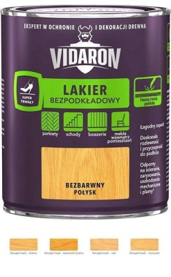 Лак алкидно-уретановый для паркета, Vidaron быстросохнущий однокомпонентный состав для паркета и деревянных полов на алкидно-уретановой основе. Лак готов к применению, при этом нет необходимости в предварительном грунтовании поверхности. Область применения: для внутренних работ с целью защитно-декоративного лакирования паркета и деревянных полов особенно рекомендуется для лакирования паркетов и полов в жилых помещениях и гимнастических залах.