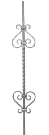 Кованый элемент балясина 12x150x950мм (05.077.01-С). Кованые элементы балясины и балюстрады изготавливаются из металлических прутьев различного сечения. Замысловатые завитки способны преобразить любое кованое изделие в приковывающее внимание ажурное произведение искусства и вписываются в любой архитектурный стиль. Такие металлические вставки применяются при изготовлении кованых балконов, террас, перил, лестничных перил. Большое разнообрание размеров и вариантов изгиба узора позволяет применять этот элемент художественной ковки практически в любом проекте изделия из металла.