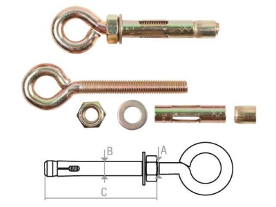 Анкер с кольцом М8х10х80 мм, STARFIX применяются для крепления тяжеловесных конструкций к полнотелому бетону, природному строительному камню, полнотелому кирпичу. Может применяться для крепления к тонким бетонным перегородкам.