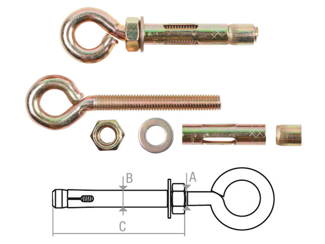 Анкер с кольцом М10х12х70 мм, STARFIX применяются для крепления тяжеловесных конструкций к полнотелому бетону, природному строительному камню, полнотелому кирпичу. Может применяться для крепления к тонким бетонным перегородкам.
