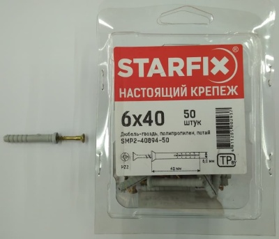 Дюбель-гвоздь 6х40 мм полипропилен потай (100 шт в пласт. конт.), Дюбель-гвоздь 6х40 мм полипропилен гриб (50 шт в пласт. конт.), Дюбель-гвоздь 6х40 мм полипропилен гриб (200 шт в пласт. конт.), Дюбель-гвоздь 6х40 мм полипропилен потай (10 шт) STARFIX |