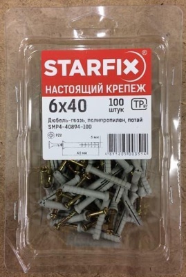 Дюбель-гвоздь 6х40 мм полипропилен потай (50 шт в пласт. конт.), Дюбель-гвоздь 6х40 мм полипропилен гриб (50 шт в пласт. конт.), Дюбель-гвоздь 6х40 мм полипропилен гриб (200 шт в пласт. конт.), Дюбель-гвоздь 6х40 мм полипропилен потай (10 шт) STARFIX |