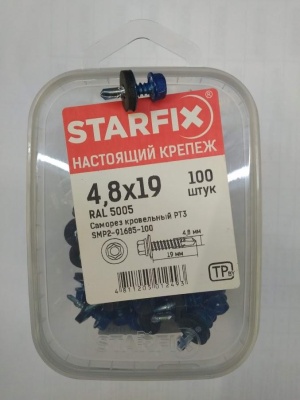 Саморез кровельный РТ3 4.8x19 SMP2-91685-100 сигнальный синий RAL5005 (упак.100 шт) STARFIX