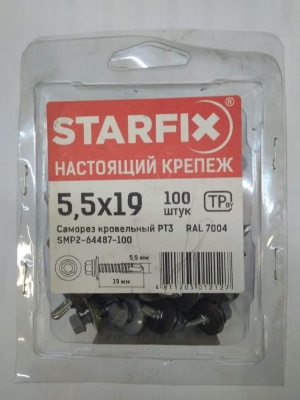 Саморез кровельный РТ3 5.5x19 SMP2-64487-100 сигнальный серый RAL7004 (упак.100 шт) STARFIX