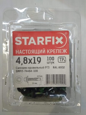 Саморез кровельный РТ3 4.8x19 SMP2-74464-100 лиственно-зеленый RAL6002 (упак.100 шт) STARFIX