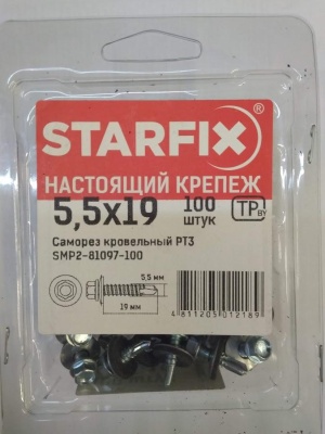Саморез кровельный РТ3 5.5x19 SMP2-81097-100 неокрашенный (упак.100 шт) STARFIX используется для крепления профнастила к металлическим конструкциям (РТ3).