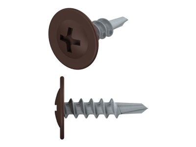 Саморез 4.2x16 с прессшайбой, цинк, со сверлом RAL 8017 (шоколадно-коричневый) STARFIX применяется для крепления стальных и других листовых материалов (фанера, оргалит и т.д.) к металлическим и деревянным несущим конструкциям.