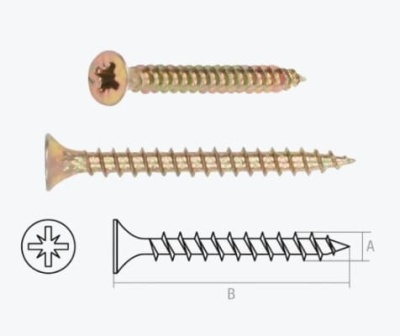 Шуруп универсальный 5x40 мм желтый цинк (25 шт.) STARFIX используется для крепления различных конструкций к дереву, фанере, ДСП. Шуруп имеет потайную головку с крестообразным шлицем (PZ) и острый наконечник.