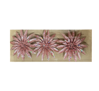 Украшение елочное цветок Pink 9см (3шт), ZY-21041