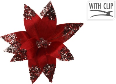Украшение елочное цветок на клипсе, красный, YZB006150