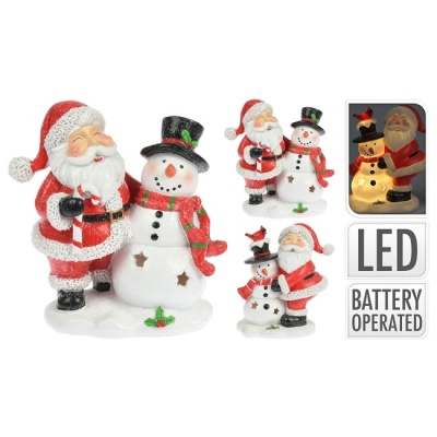 Статуэтка полистоун светящаяся "Санта и снеговик" 14 см, ALX615730