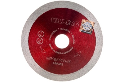 Диск алмазный по керамограниту, твердой керамике 125х22,23мм сплошной ультратонкий, Hilberg