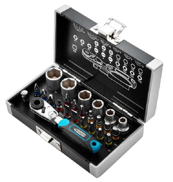 Набор бит и торцевых головок 1/4", магнитный адаптер GROSS 11361 - это комплект из 26 инструментов для выполнения любых видов работ. Ключ-трещотка (с приводом 1/4 дюйма) имеет эргономичную рукоятку, состоящую из двух компонентов. Набор упакован в двойной блистер, позволяющий видеть содержимое, что обеспечивает быстрый доступ к инструменту, плюс удобно для хранения и перемещения.