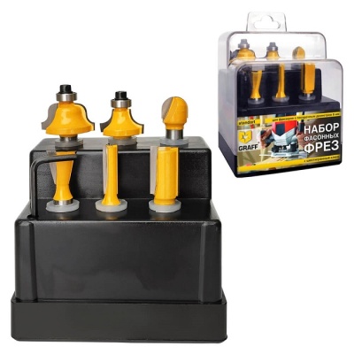 Набор из 6-ти фасонных фрез, 138306 GRAFF из высококачественного материала с твердосплавными напайками. Посадочный диаметр - 8 мм. Данные фрезы предназначены для выборки пазов, формирования фигурных кромок и изготовления изделий по шаблону.