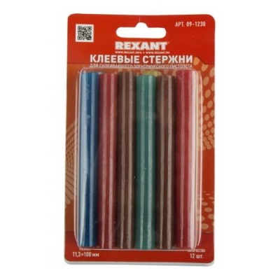 Клеевые стержни 11.3 x 100 мм (12 шт) цветные, REXANT 09-1230