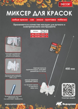 Миксер 76мм для краски 450 мм DECOR 999-076