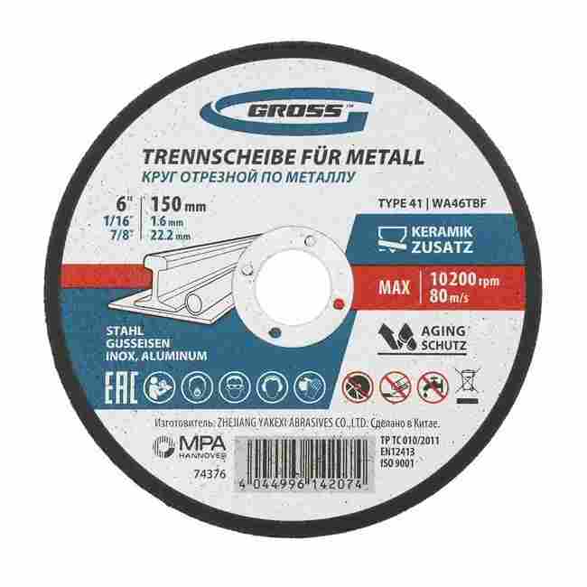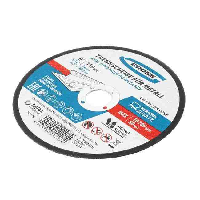 Круг отрезной для металла и нерж. стали 150х1.6x22.2 мм, Gross WA46TBF