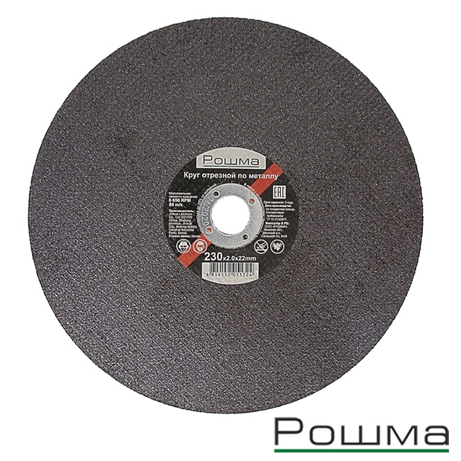 Круг отрезной 230х2,0х22мм для металла Рошма для быстрого и точного разреза обычной и нержавеющей стали. Используется на ручных, угловых, шлифовальных машинах (УШМ).