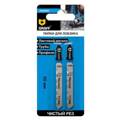 Пилки для лобзика 50 мм по металлу T118A HSS (2 шт.), GRAFF