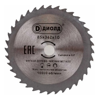 Диск пильный по дереву 85х1.6х10 мм, 36Z, ДИОЛД ДМФ-85 БС 90063002
