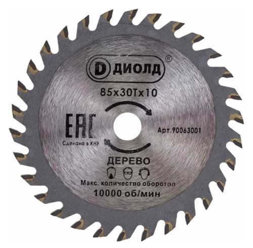 Диск пильный по дереву 85х1.8х10 мм, 30Т, ДИОЛД ДМФ-85 ТС 90063001