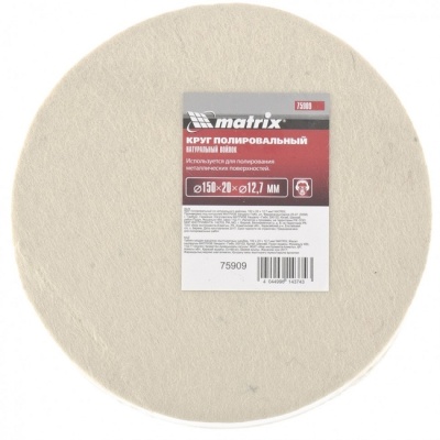 Круг полировальный из натурального войлока, 150 х 20 х 12.7 мм, Matrix 75909
