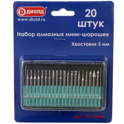 Набор мини-шарошек алмазных (20шт), хвостовик 3мм, Диолд 90115004