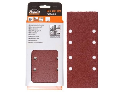 Шлифлист 93х230 мм для дерева 8 отв Р320 GEPARD 5 шт, Шлифлист 93х230 мм для дерева 8 отв Р240 GEPARD 5 шт, Шлифлист 93х230 мм для дерева 8 отв Р80 GEPARD 5 шт, Шлифлист 93х230 мм для дерева 8 отв Р60 GEPARD 5 шт |