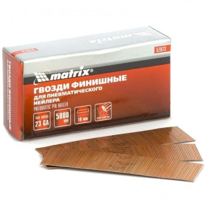 Гвозди финишные, (шпильки) 23GA для пневматического нейлера, D 0,64 мм, длина 18 мм, 5000 шт Matrix предназначены для крепления материала к поверхностям с помощью пневматического нейлера.