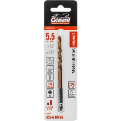 Сверло по металлу HSS-G-TiN 5.5 мм DIN 338 GEPARD GP1055-112
