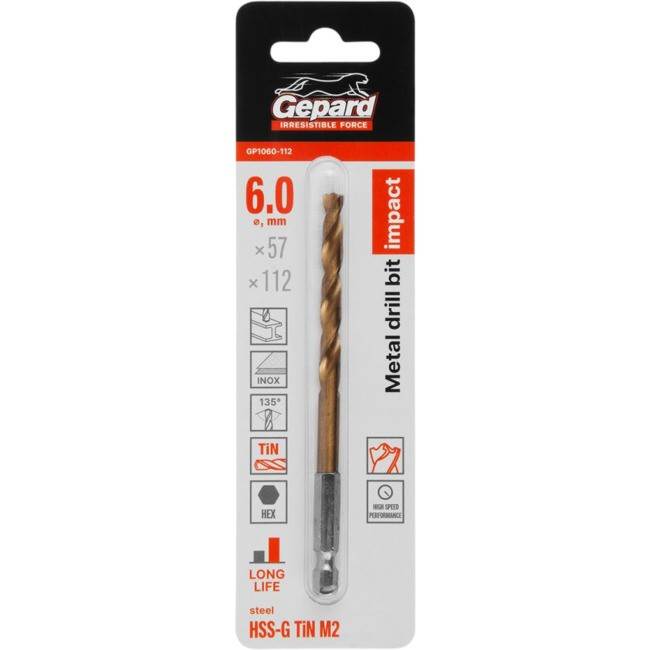 Сверло по металлу HSS-G-TiN 6.0 мм DIN 338 GEPARD GP1060-112