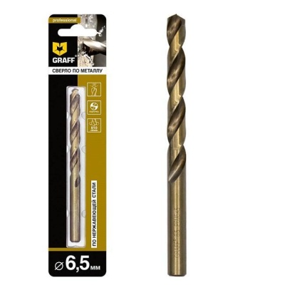 Сверло по нержавеющей стали кобальтовое 6.5 мм, GRAFF