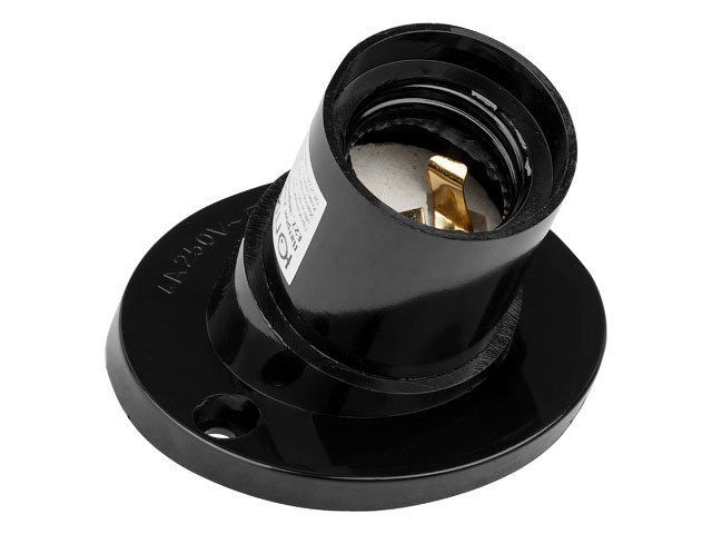 Патрон Е27 карболитовый потолочный, наклонный, черный JP7700-03 Юпитеp изготовлен из негорючего материала - фенопласта (карболита).