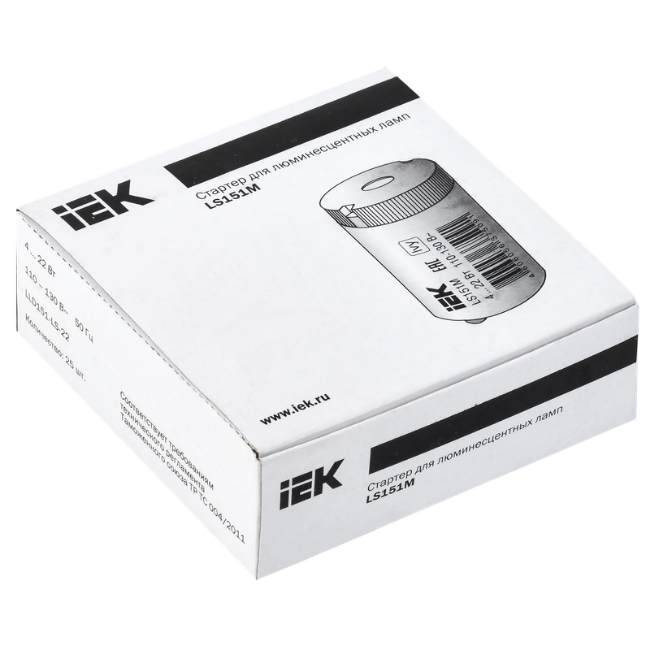 Стартер LS151M 4-22 Вт 110-130 В IEK LLD151-LS-22 для быстрого и надежного зажигания трубчатых люминесцентных ламп, работающих в сети переменного тока частотой 50 Гц. Стартер представляет собой миниатюрную газоразрядную лампу с тлеющим разрядом, которая состоит из колбы, заполненной инертным газом, и двух электродов, размещенных внутри этой колбы.