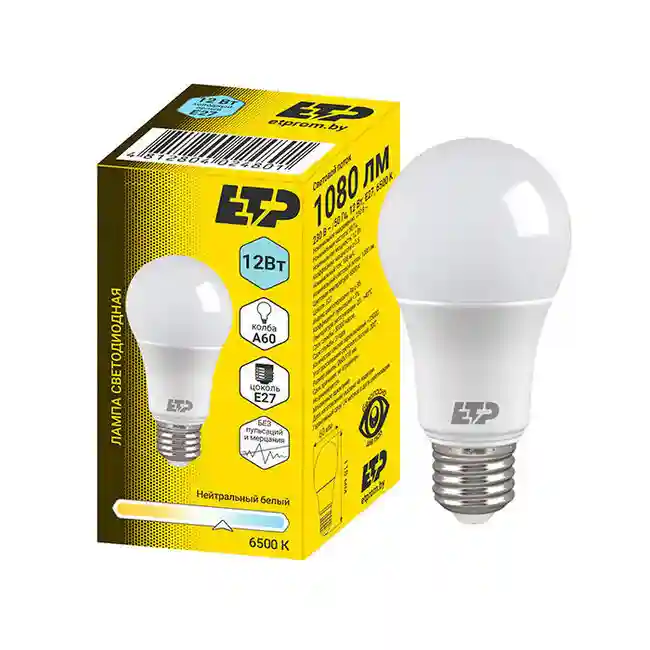 Лампа светодиодная A60 12Вт 230В E27 6500K ETP 35910
