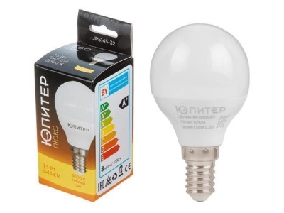 Лампа светодиодная G45JP5145-32 7,5Вт E14 3000K ЮПИТЕР ЛЮКС предназначена для использования в стандартных электрических сетях. Не создает электромагнитных помех другим устройствам, соответствует всем стандартам по энергобезопасности. Алюминиевый радиатор в пластиковом кожухе обеспечивает низкую температуру нагрева за счёт отвода тепла от основных частей лампы.