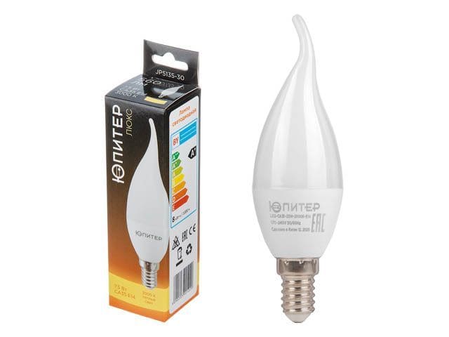 Лампа светодиодная CA35 JP5135-40 7,5Вт E14 4000K ЮПИТЕР ЛЮКСпредназначена для использования в стандартных электрических сетях. Не создает электромагнитных помех другим устройствам, соответствует всем стандартам по энергобезопасности.