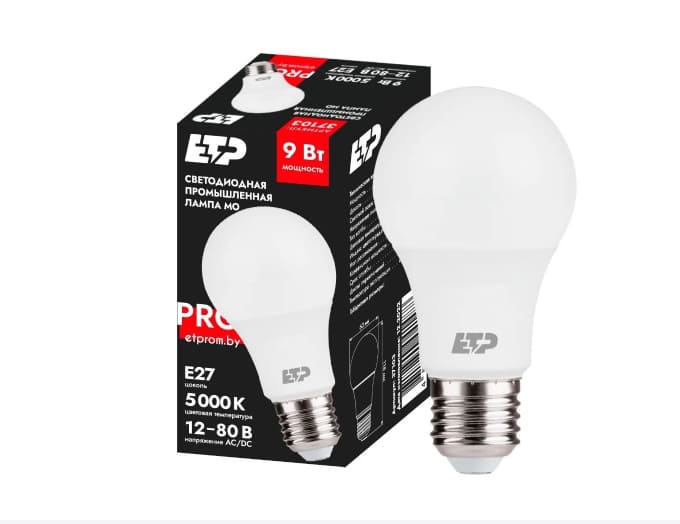 Лампа светодиодная A60 9W MO 12-80V 5000K E27 ETP
