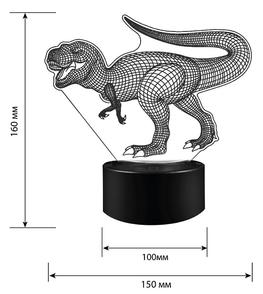 - Особенности: Питание от сети 220В, питание от батареек 3 АА (в комплект не входят), питание от USB-порта. Эффект объёмного изображения, RGB подсветка 7 цветов