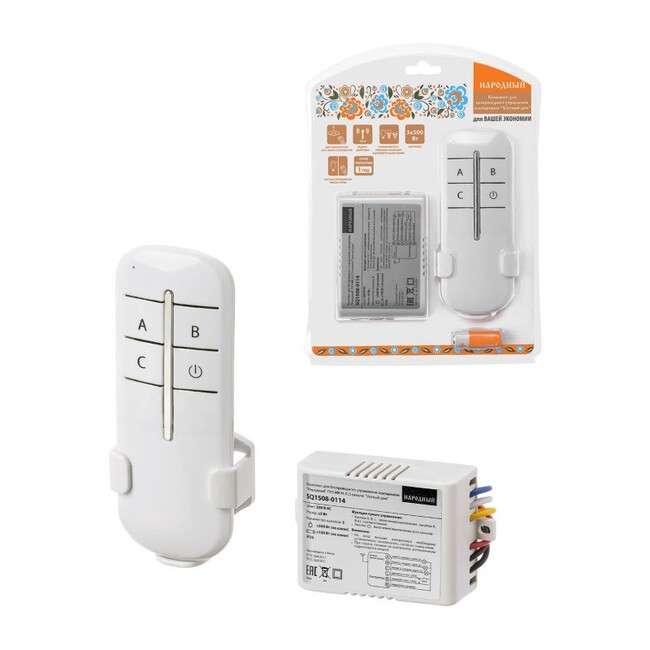 Комплект для беспроводного управления освещением 3 канала ПУ3-МK-Н-3 Народный SQ1508-0114 предназначен для дистанционного включения/отключения освещения, включая люстры и торшеры, акцентную подсветку, точечное освещение и садово-парковое освещение.
