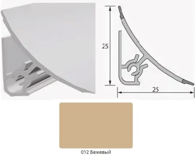 Плинтус для столешницы 3м Бежевый/012 Идеал – сконструирован для декорирования стыков поверхностей стены и столешницы. Плотное прилегание мягкой кромки плинтуса к стене и столешнице обеспечивает защиту от влаги и грязи. Может применяться и в ванных комнатах, так как устойчив к повышенной влажности и перепадам температур. Состоит из заднего монтажного профиля и лицевой части.